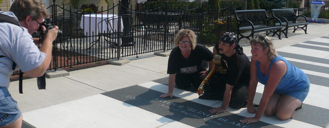 - 2008: Official Invitation to Grafton and Historical Verification: Formally invited to the “Paramount Walk of Fame” in Grafton, Wisconsin, as a scholar of Blind Blake. In addition to performing at the ceremony, he conducted a re-verification of “Michael’s Photography”—the purported site of Blake’s only known photograph—from physical and architectural perspectives, exposing contradictions in established theories.